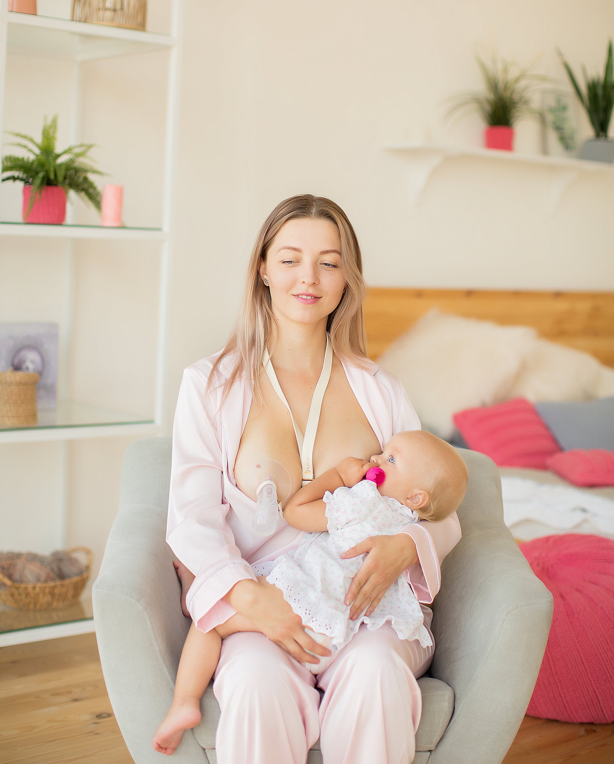 Vraiment impressionnée! La façon la plus simple de constituer une réserve de lait. Depuis ma transition vers une production autocrine obtenir du lait était un enfer! Maintenant plus rien a faire, on l’installe et on allaite de l’autre sein, c’est fantastique !